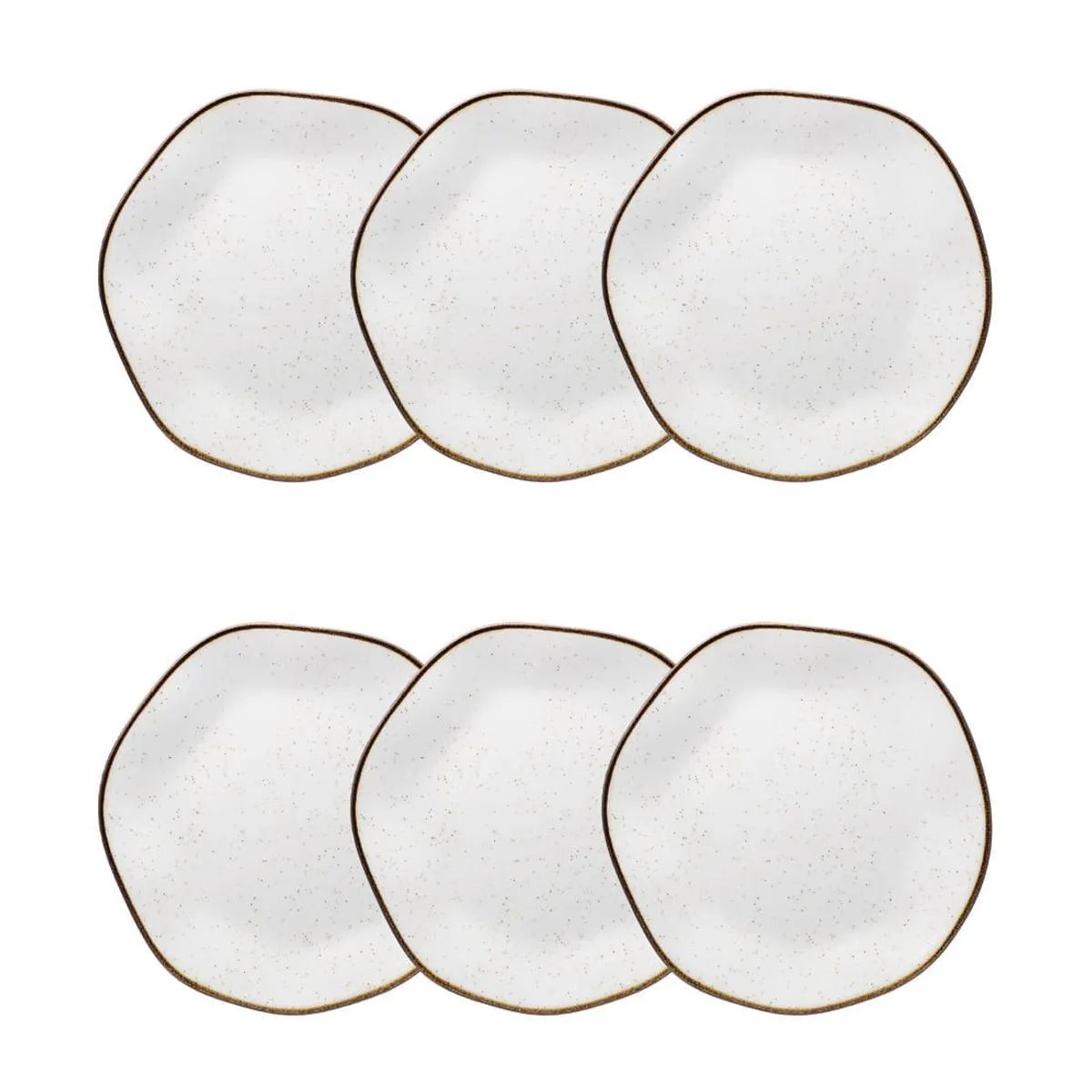 6 - Pratos de Sobremesa Oxford Ryo Maresia 21,5cm (Branco e Marrom)